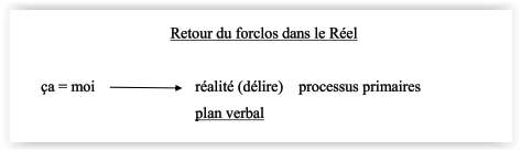 La position du psychotique est radicalement différente; exclu du spéculaire, il se situe en deçà de toute identité pour l'Autre.